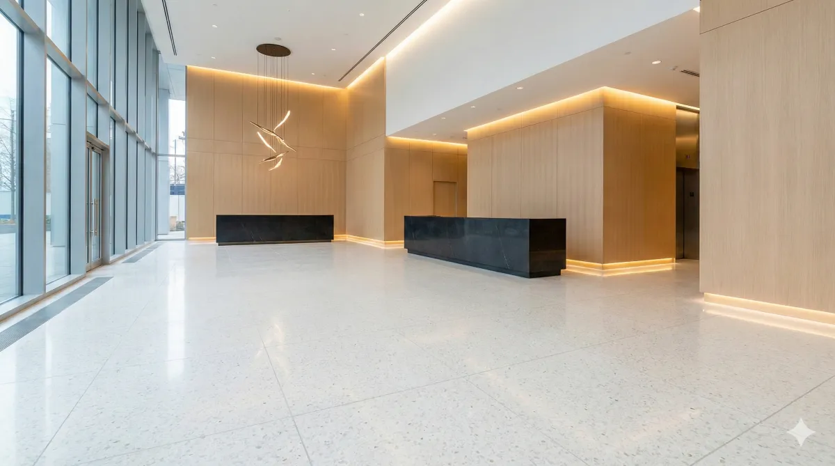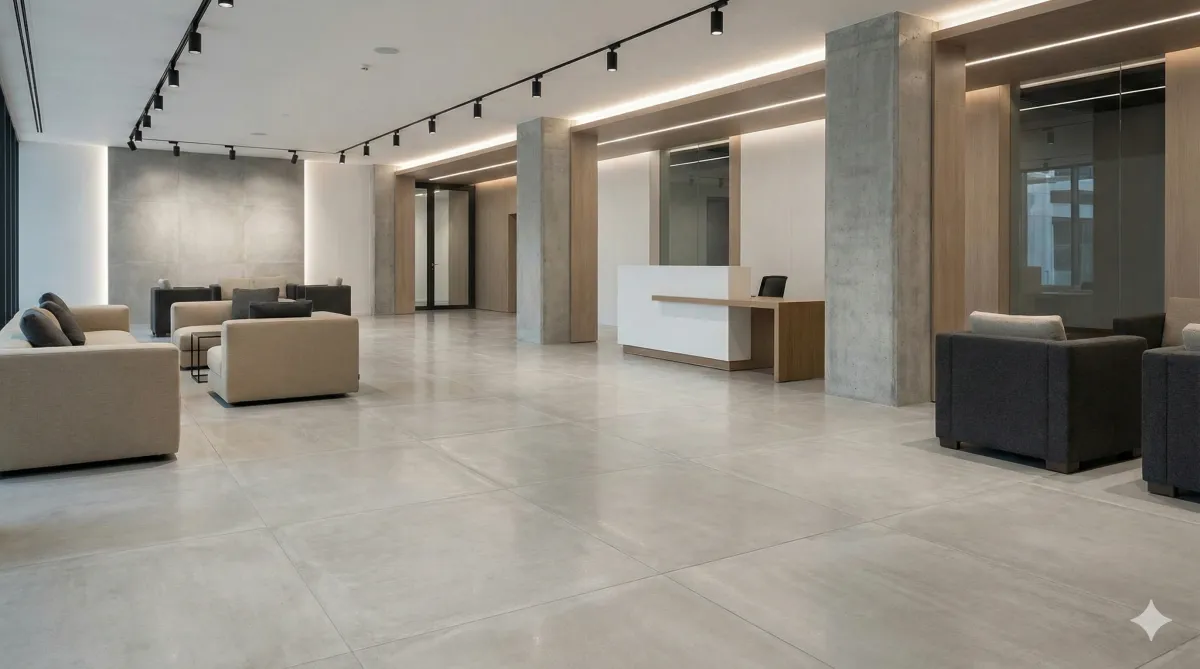 Durable tile flooring installed for a commercial environment, built to handle high traffic while maintaining a clean, professional appearance.
